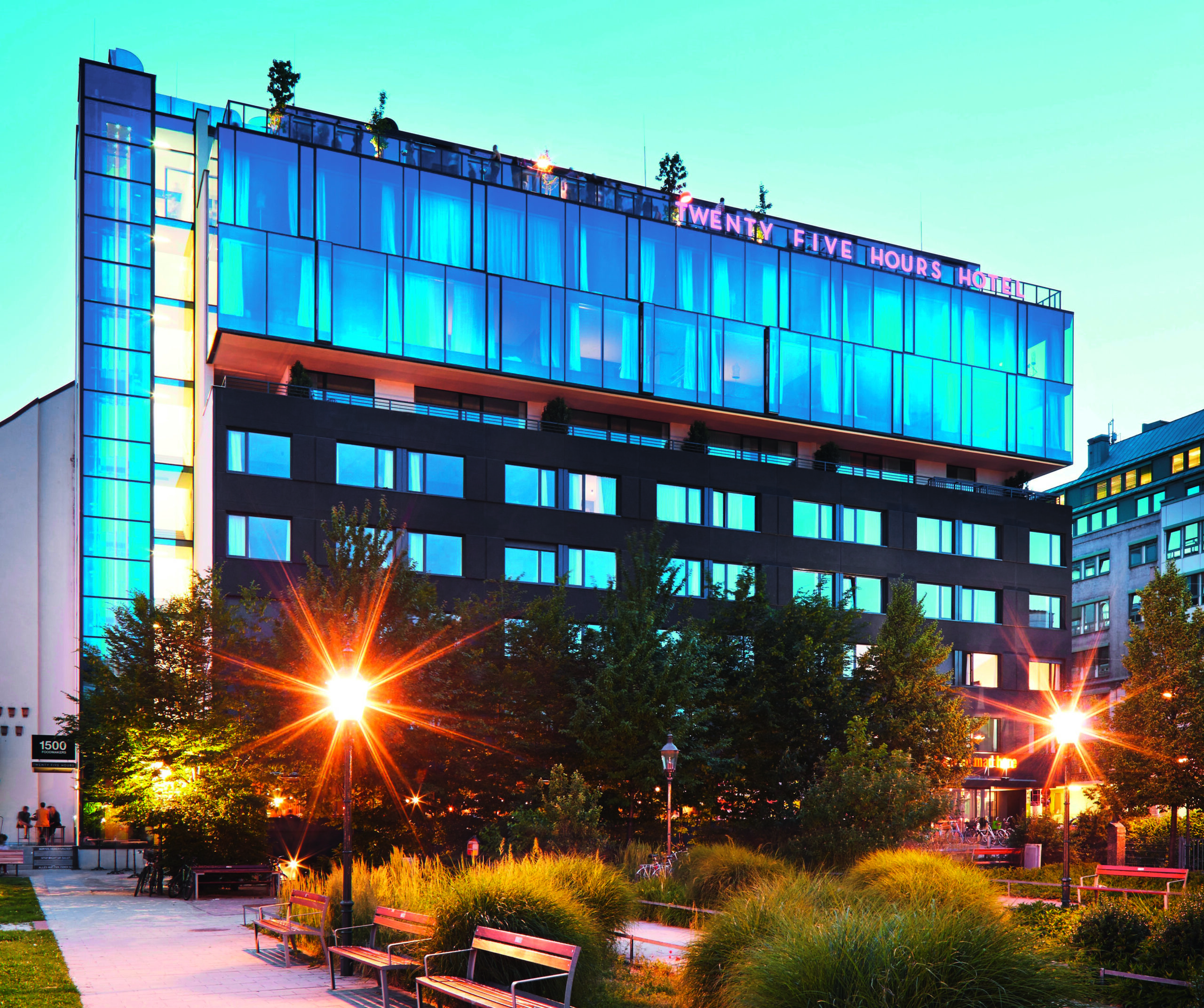 The 25hours Hotel am MuseumsQuartier Wien was built in the early 1970s and extensively renovated in 2013. The conversion from a student residence to a lifestyle hotel was carried out by BWM Architektur & Design interdisziplinäre GmbH, while the interior was designed by Dreimeta in a unique circus theme. An imposing glass structure with a rooftop bar crowns the building and offers spectacular views over the city.